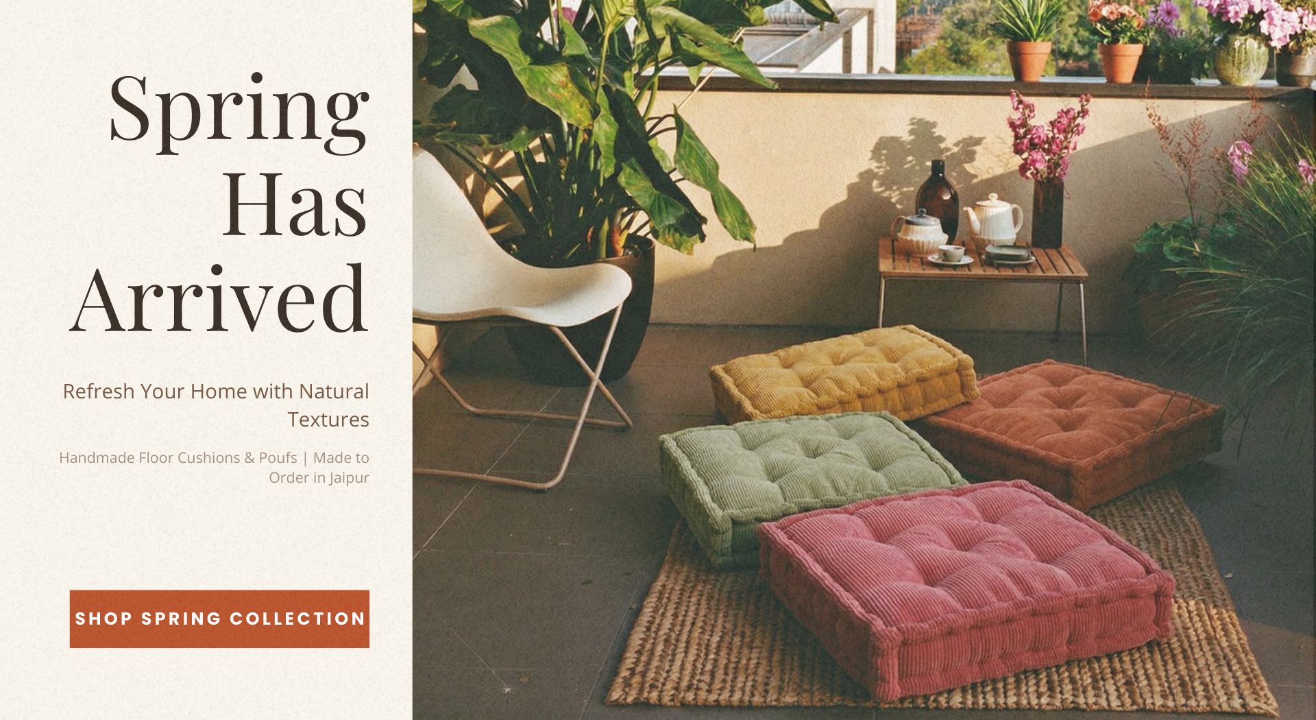 We craft with intention, using heritage techniques like embroidery and block printing, alongside modern designs such as checks and stripes. Our luxurious cushions, poufs, and curtains are more than decor; they're pieces of the world designed to layer your home with personality and warmth.