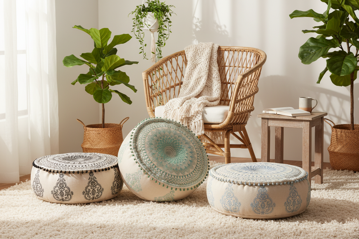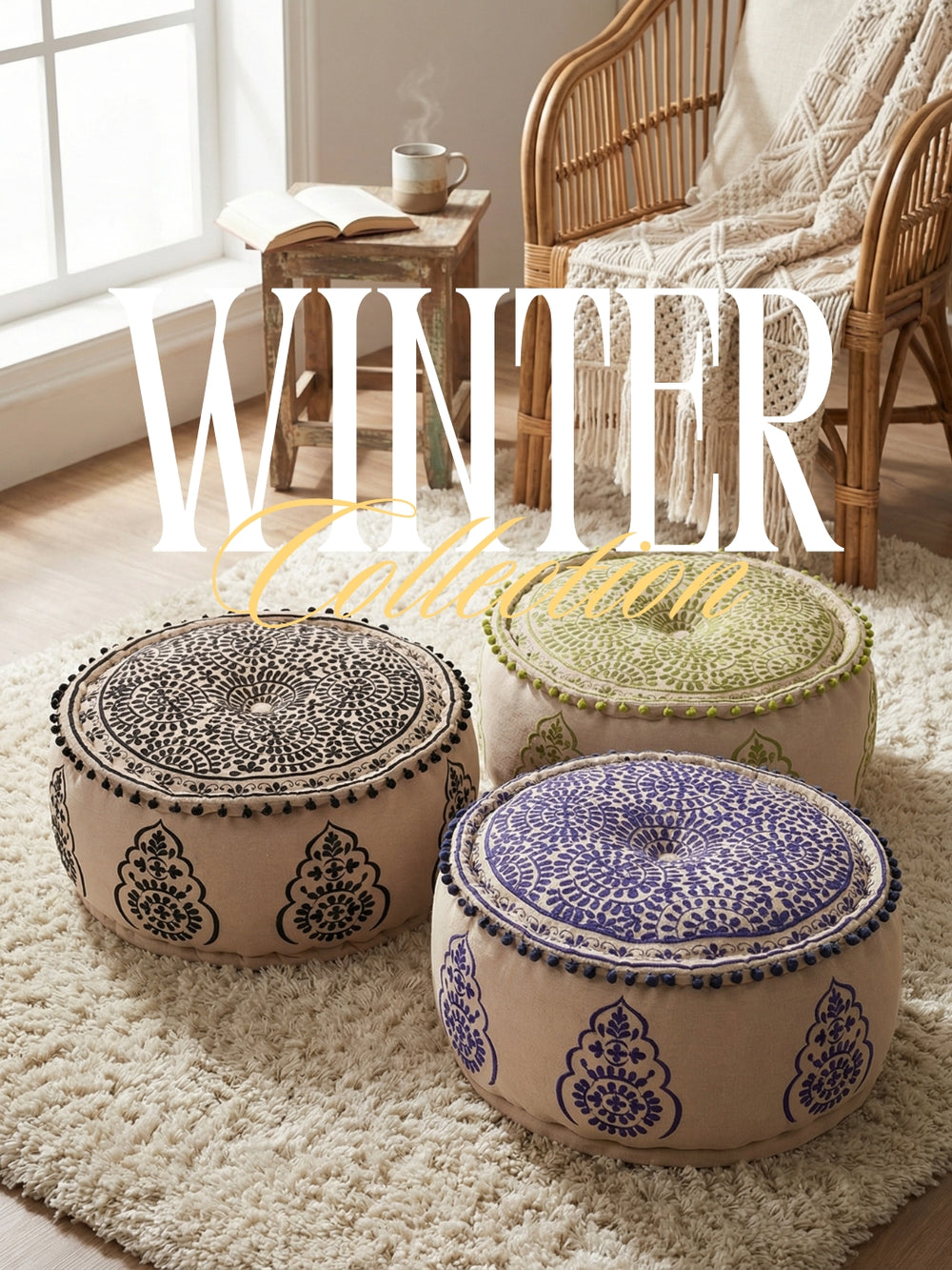 We craft with intention, using heritage techniques like embroidery and block printing, alongside modern designs such as checks and stripes. Our luxurious cushions, poufs, and curtains are more than decor; they're pieces of the world designed to layer your home with personality and warmth.