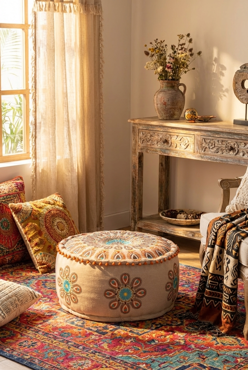 Inspired by wanderlust, we journey from India's bustling bazaars to Moroccan souks, African plains, and European villages, collecting unique patterns and textures. We infuse these diverse influences—from Indian mandalas and Moroccan tufting to African tribal prints and European ruffles—into curated collections like "Terracotta Wander."